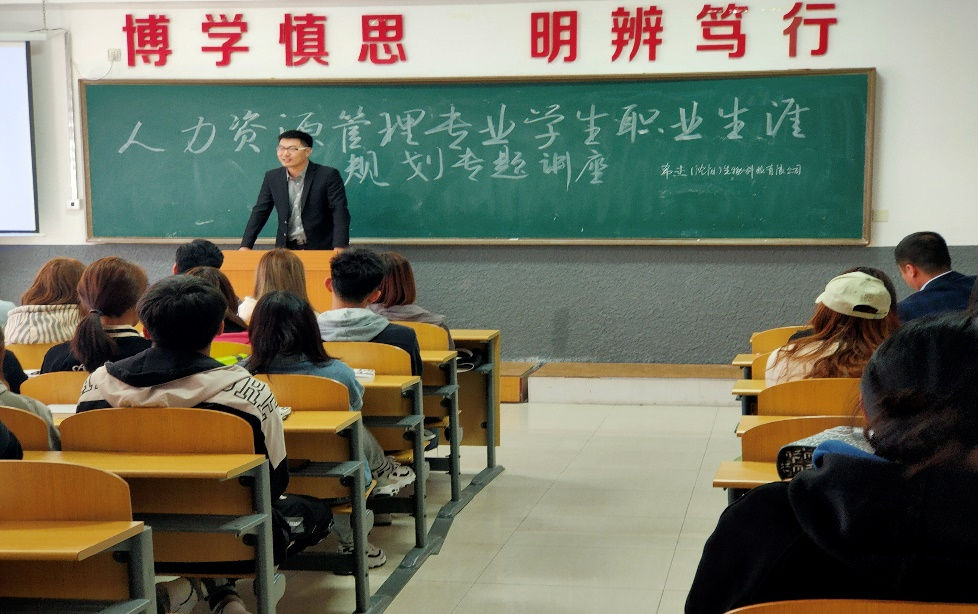 4月14日,希杰(沈阳)生物科技有限公司在博思楼311教室,为人力资源管理专业学生开展了题为“人力资源管理专业学生职业生涯发展规划”的专题报告及宣讲会,人力资源管理专业部分大四学生、大三全体学生参与了本次活动。