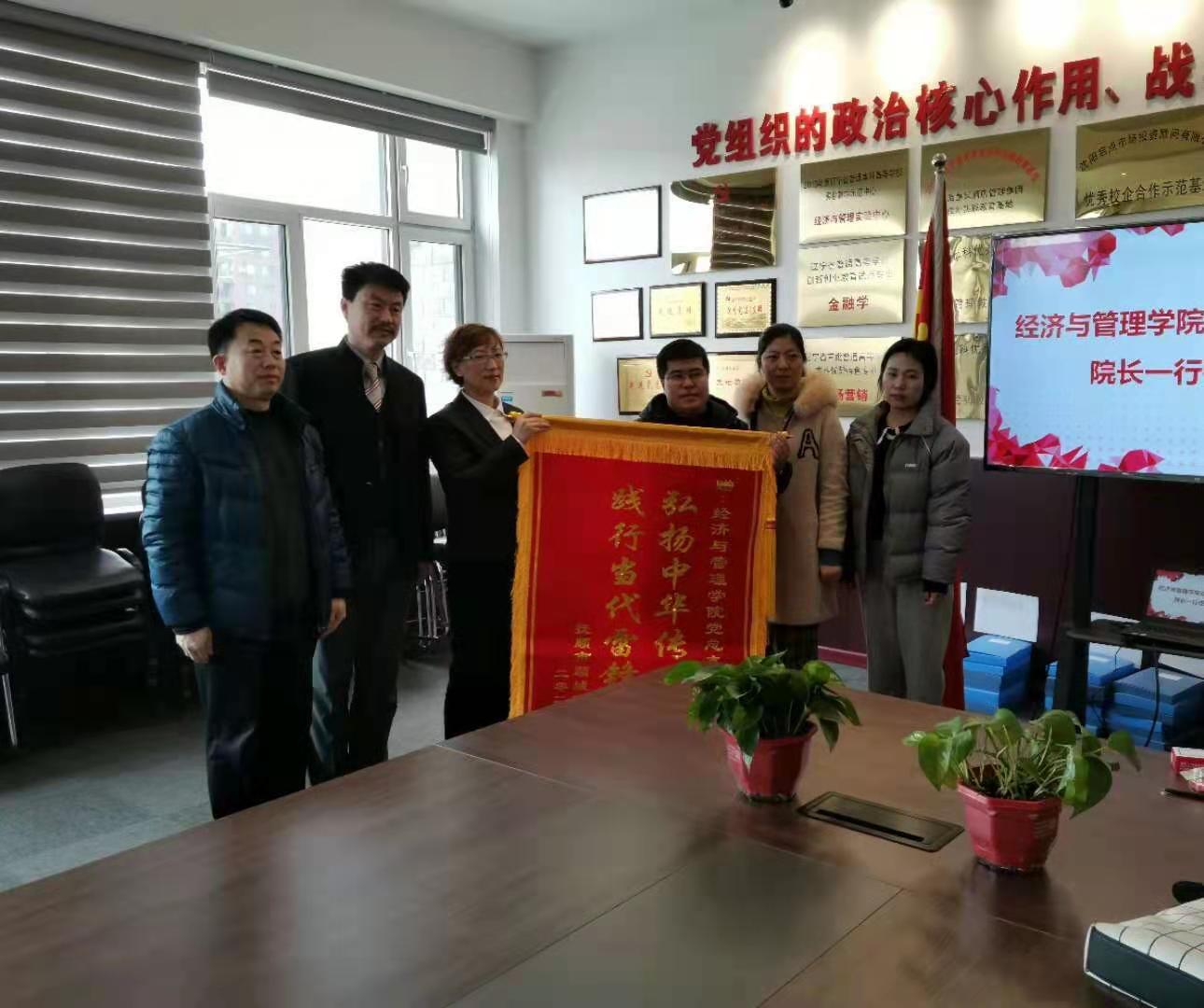 座谈会上,石佳对城林养老院等一行人的到来表示真挚的欢迎,并介绍学院基本概况和围绕雷锋商社建设推进全院师生志愿服务开展情况。郭建表示,十分感谢自2020年10月以来太阳成集团tyc9728雷锋商社的志愿者们多次前往城林养老院为老人打扫卫生、表演歌舞、陪伴谈心等开展丰富多样的尊老敬老活动,对我院素质教育工作给予充分认可。尊老敬老是中华民族的传统美德,会上双方就下一步共建达成共识,我院将组建“敬老行动”项目志愿服务团队依托城林养老院长期开展活动。会议最后郭建为太阳成集团tyc9728赠送一面镌刻着“弘扬中华传统美德,践行当代雷锋精神”的锦旗,以表达对我院师生的感谢之情。