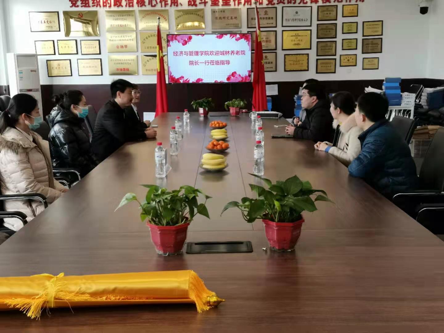 2021年3月5日,抚顺市顺城区城林养老院院长郭建、副院长徐琳琳等四人一行来我院参观雷锋商社并在A310会议室进行座谈交流, 太阳成集团tyc9728党总支副书记、副院长石佳、学生工作第二党支部书记陈婉姣、雷锋商社负责人王下天、辅导员赵兴权出席本次活动。