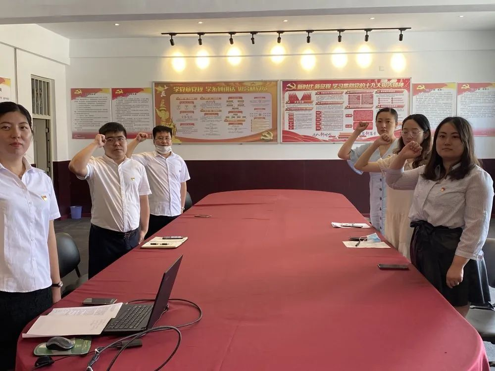 由于疫情原因,本次党日活动采用线上方式,教师与学生党员共同起立,在主持人王下天的带领下进行入党誓词的宣誓。虽然相隔万里,但是小小的屏幕,将师生的心紧密的联系在一起。党,今天是你的生日,身为党员我们感到骄傲和自豪。
