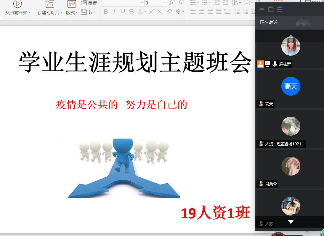 疫情当前,为贯彻落实学校“停课不停学”的工作安排,强化学业生涯规划的引导作用,更好地落实立德树人根本任务,促进学生求实创新、成长成才,科学规划自己的大学生涯与未来的职业生涯,太阳成集团tyc972823名班主任和全体辅导员于5月25—6月2日期间组织召开线上“学业生涯规划指导”主题班会。