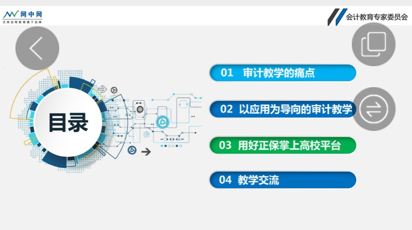 徐永涛教授主要介绍了四个方面内容:一是从《审计》教学面临的痛点说起,二是以应用为导向的审计教学,三是如何用好正保掌上高校平台,四是教学交流。以审计报告开篇、将业务流程贯穿于教学中、理论与运用相结合几个方面,指导老师开展线上线下混合式教学。