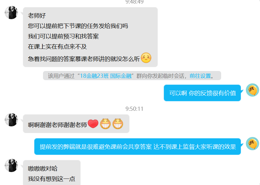 1.开课前1周建立了课程-班级QQ群,并设置班委为群管理员。
